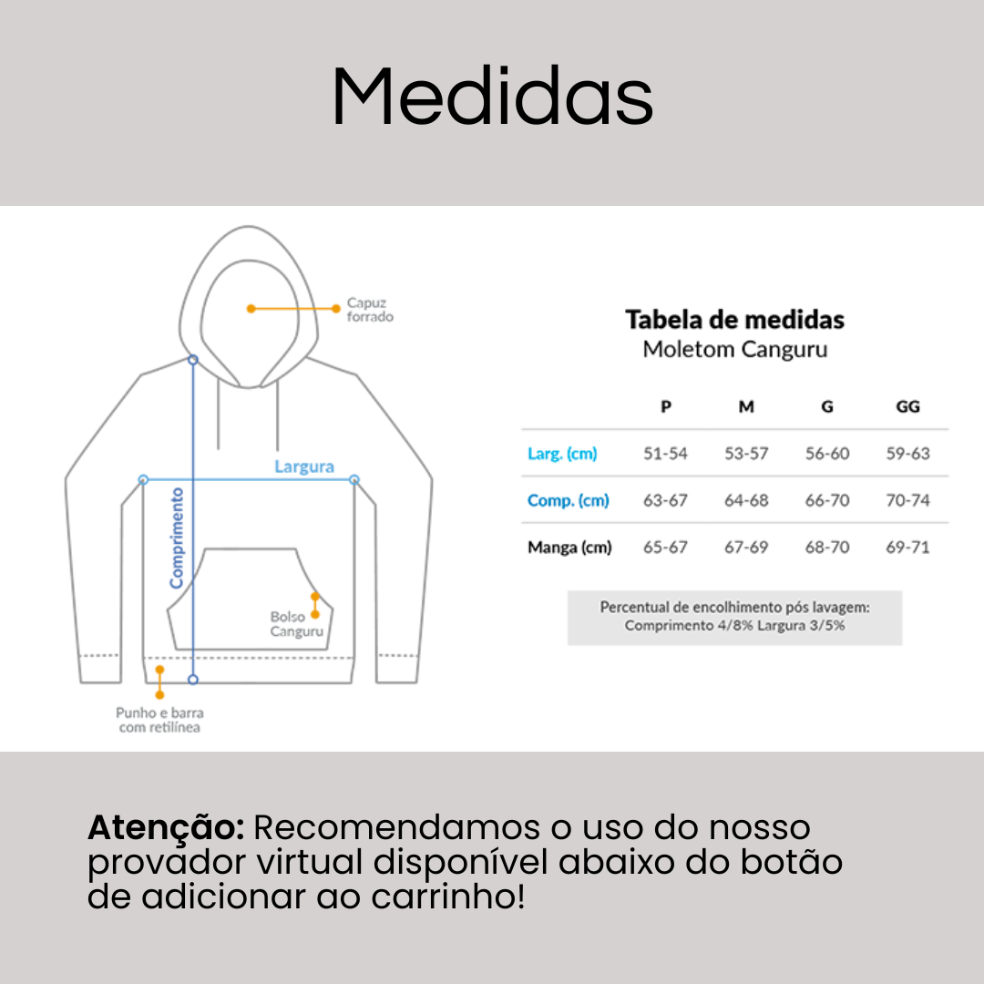 Cores do produto: Como cada tela de computador ou celular tem seu próprio jeito de mostrar cores, então a cor da sua camiseta e da estampa pode ser um pouco diferente do que você viu online.