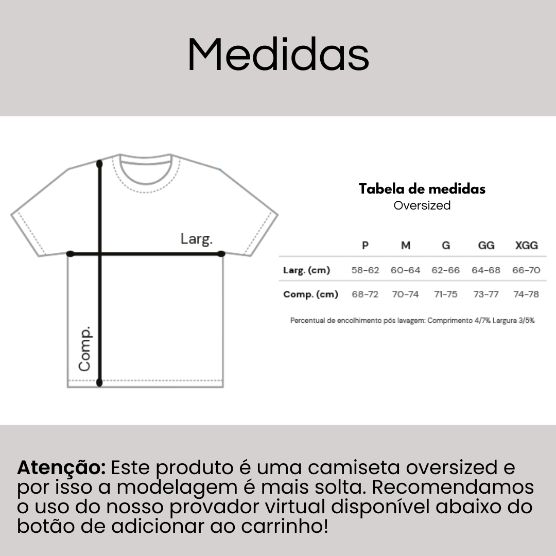 Cores do produto: Como cada tela de computador ou celular tem seu próprio jeito de mostrar cores, então a cor da sua camiseta e da estampa pode ser um pouco diferente do que você viu online.